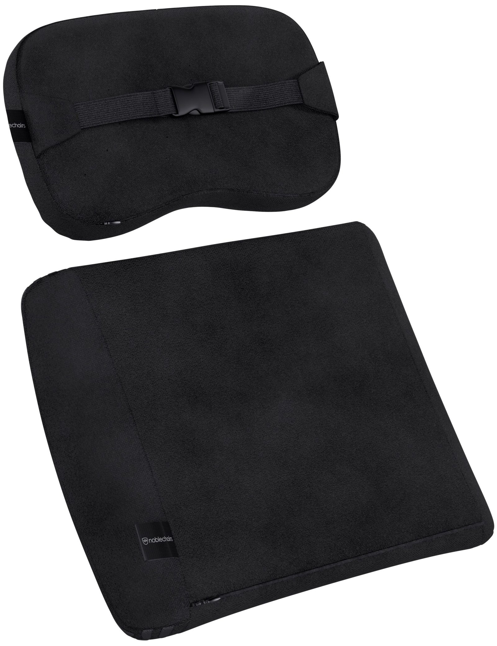 Consistindo numa almofada mais pequena para o pescoço e numa maior para a lombar, podes sentar-te com a confiança de saber que tens o melhor suporte. Oferecendo extenso suporte para as vértebras lombares com um design suave e flexível graças ao núcleo de espuma de memória, podes sentar-te sem que as almofadas percam a sua forma – mesmo durante longos períodos. A almofada para o pescoço oferece uma fita elástica permitindo um posicionamento perfeito e máximo conforto em qualquer um dos modelos noblechairs.
