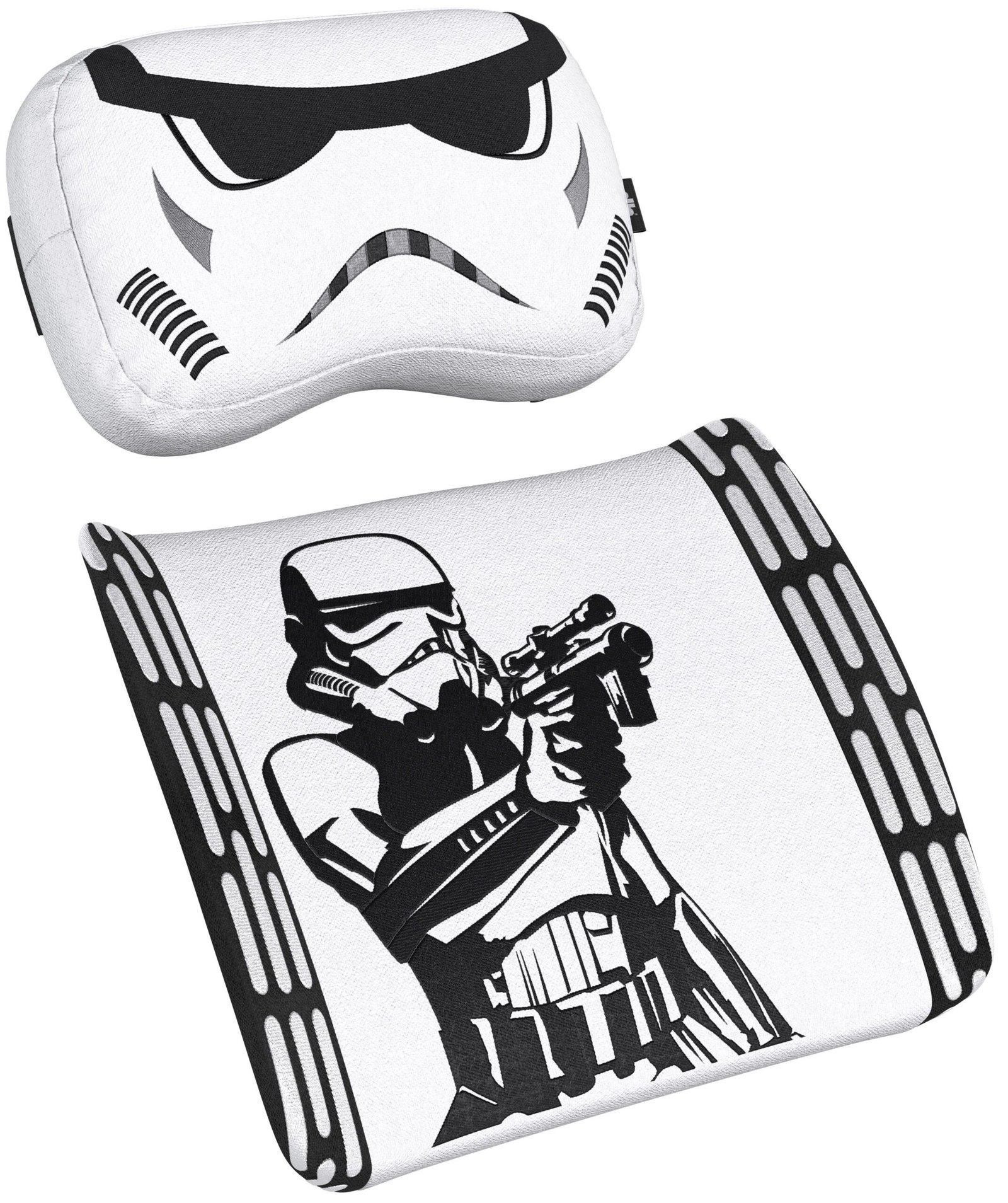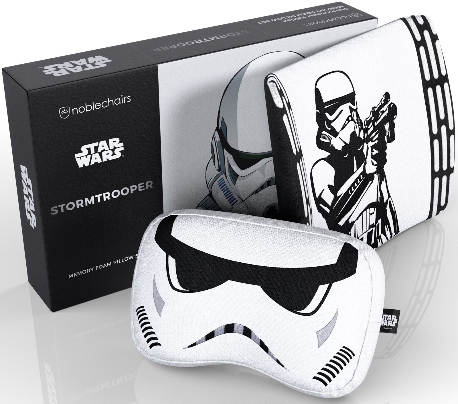 Proteger a Galactic Empire nunca foi tão confortável. Com o Set de almofadas noblechair de espuma de memória STORMTROOPER Edition, terá o poder das legiões atrás de si. Melhore qualquer uma das séries noblechair com este elegante conjunto de almofadas e sinta todas as melhorias do Império. A almofada de pescoço manter-vos-á alerta, para que nenhum inimigo rebelde vos leve a melhor, e é decorada segundo o clássico capacete STAR WARS stormtrooper. A almofada lombar apresenta uma rendição detalhada de um stormtrooper, pelo que nada o impedirá nas suas aventuras