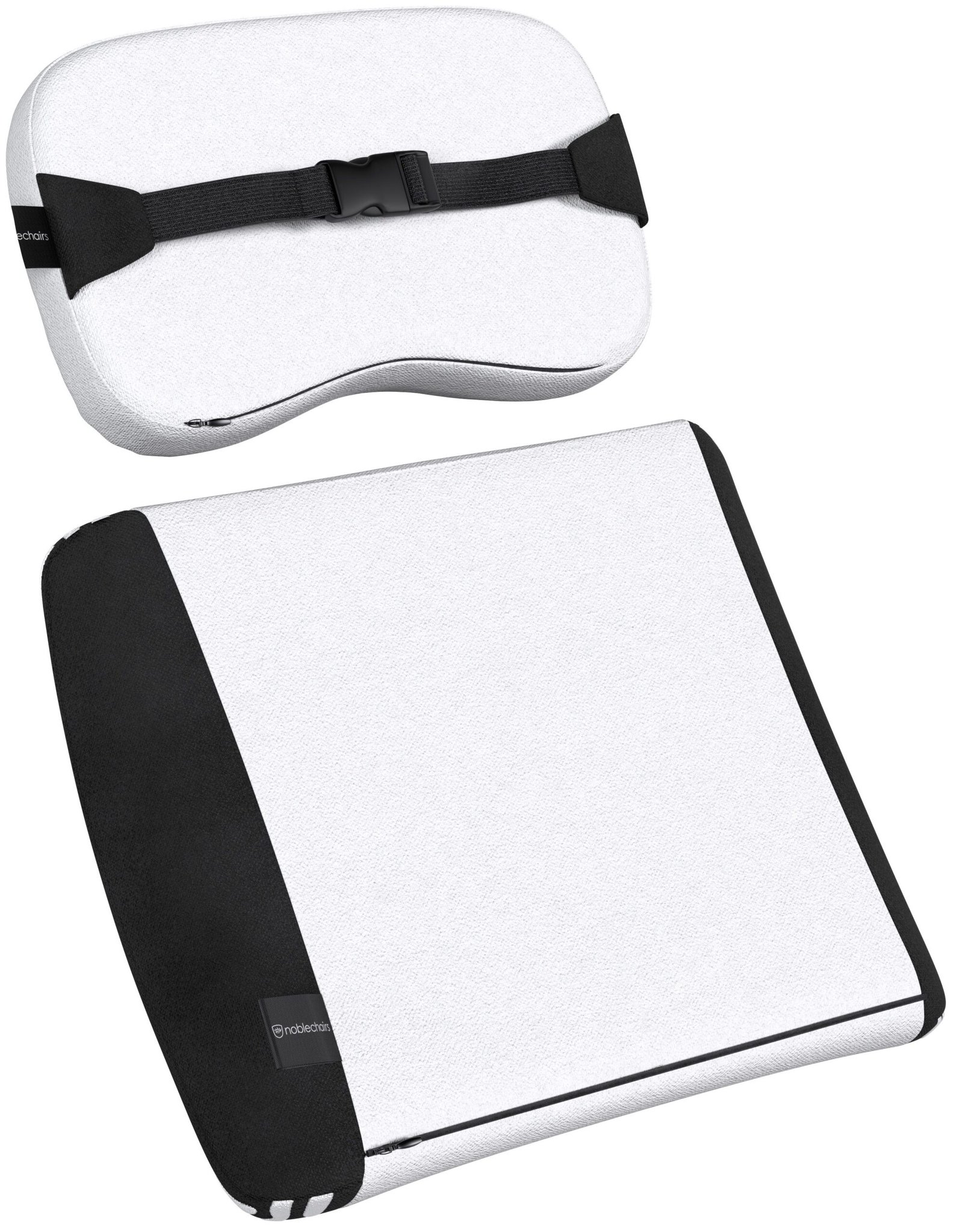 Consistindo numa almofada mais pequena para o pescoço e numa maior para a lombar, podes sentar-te com a confiança de saber que tens o melhor suporte. Oferecendo extenso suporte para as vértebras lombares com um design suave e flexível graças ao núcleo de espuma de memória, podes sentar-te sem que as almofadas percam a sua forma – mesmo durante longos períodos. A almofada para o pescoço oferece uma fita elástica permitindo um posicionamento perfeito e máximo conforto em qualquer um dos modelos noblechairs.