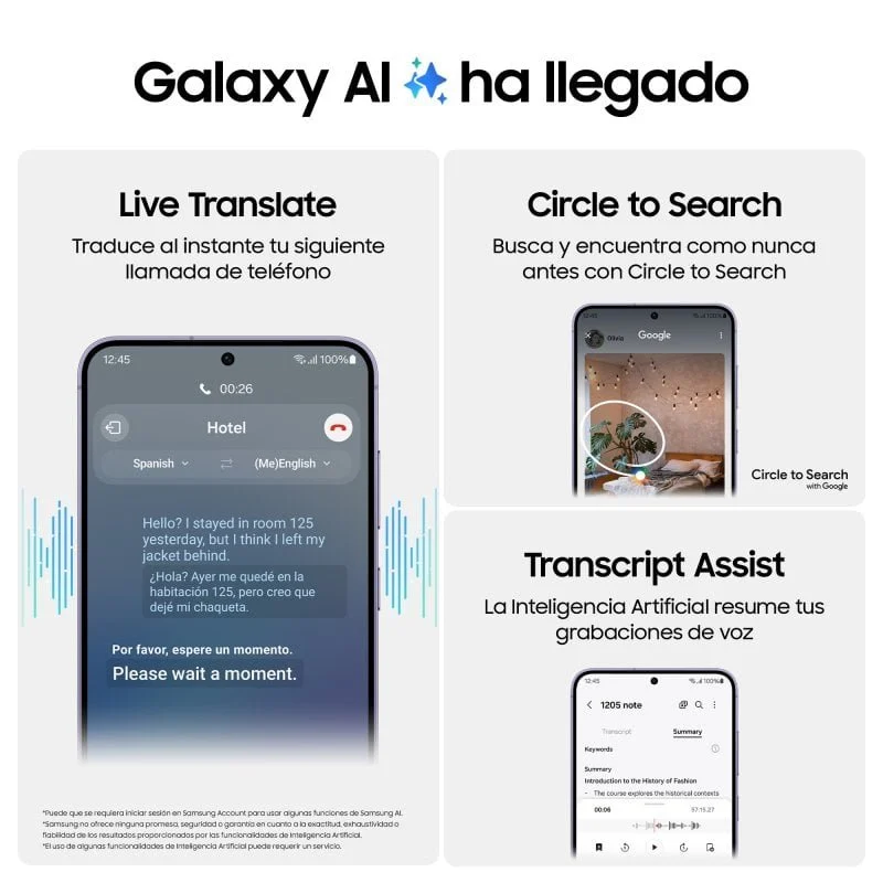 Bem-vindo à nova era da comunicação. Se há algo que se destaca no novo Galaxy S24 é a revolução que representa na hora de comunicar. A Inteligência Artificial abre todo um mundo de possibilidades em que as barreiras linguísticas são confusas, o trabalho é simples e produtivo e todas as respostas estão ao seu alcance. Com os seus diferentes assistentes, como Live Translate ou Chat Assist, pode traduzir instantaneamente chamadas e conversas. Com Web Assist economizará tempo navegando na Internet e obtendo resumos e traduções dos artigos ou notícias que desejar. Converta as suas gravações de voz em texto com o Transcript Assist e encontre as informações desejadas simplesmente circulando-as na tela. Descubra uma nova maneira de usar o seu dispositivo!