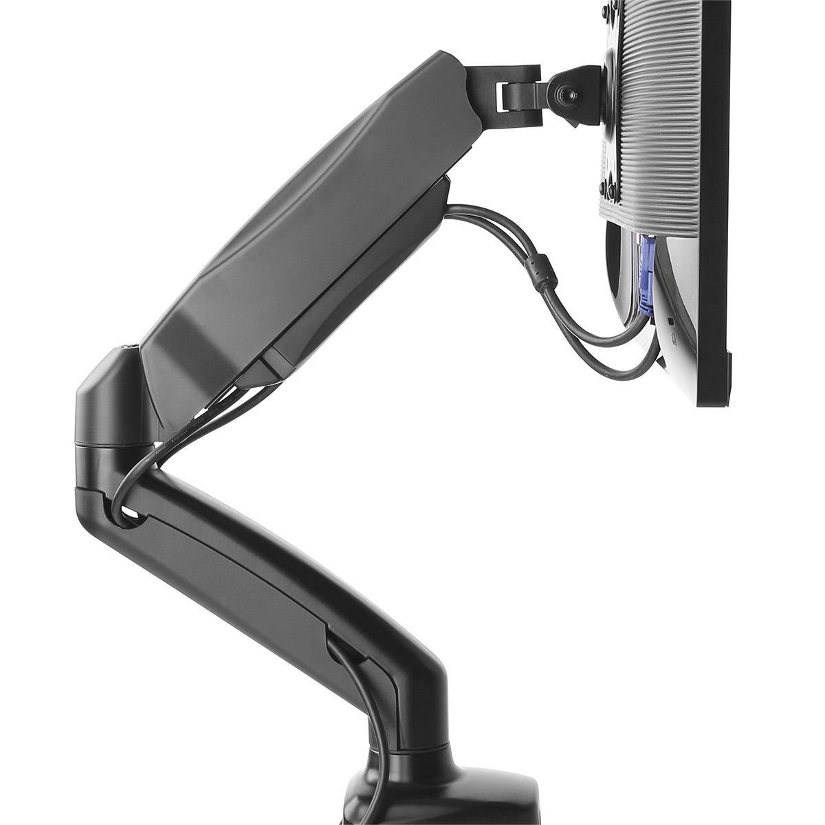 O Suporte de Secretária Full-Motion para Monitor Napofix® DM3100 é construído em alumínio e com um sistema exclusivo de mola a gás para ajuste suave do ecrã. Adapta-se à maioria dos monitores de 17-32” até 9kg. Perfeito para casa ou escritório com duas opções de montagem: braçadeira e ilhó. Placa VESA com slots de encaixe para rápida instalação e remoção. Com recursos de mobilidade total como inclinação de +90°/-45°, giro de ±90°/±180°/±180°, rotação de ±180° e ajuste de altura de 250mm, encontrar a posição de visualização desejada não será problema. Gestão de cabos para uma aparência limpa.