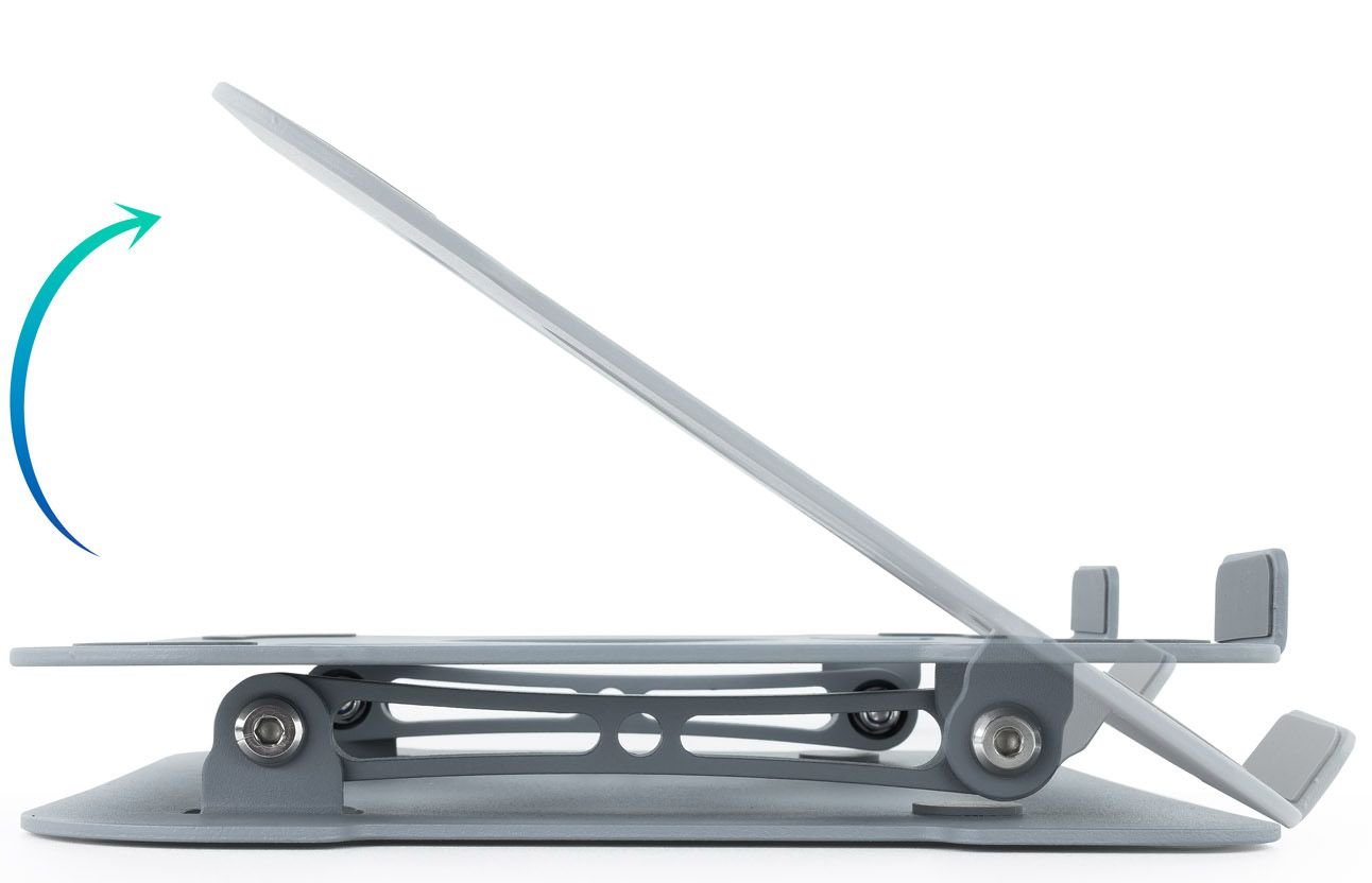 Descubra a melhor maneira de elevar um portátil ou tablet. Nosso suporte é projetado para adotar a melhor posição para manter a higiene postural ideal. Fique confortável e trabalhe sem tensão. Além disso, seu design leve e dobrável permitirá que você o carregue sempre com você e o use em qualquer ocasião.
