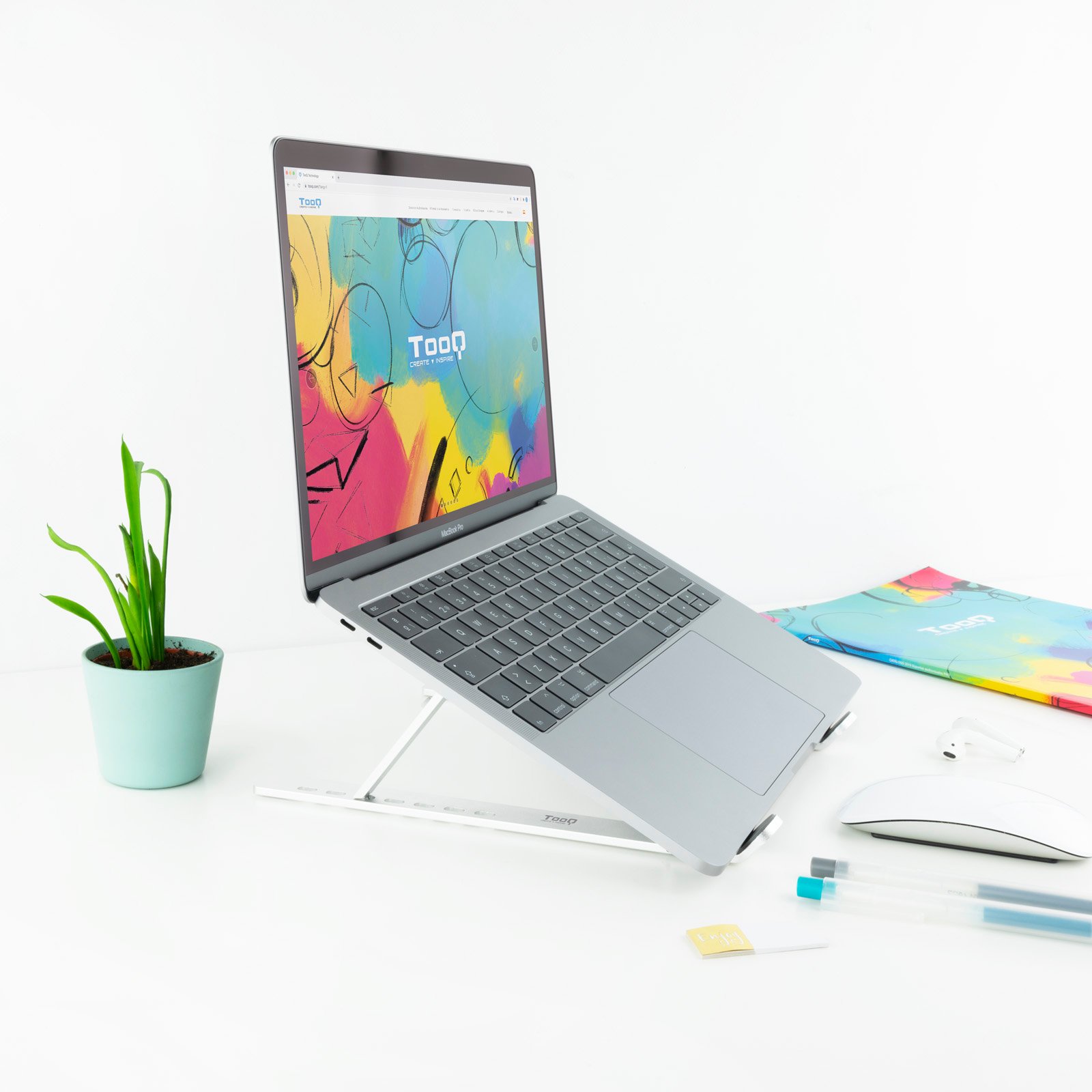 Design dobrável, fácil de transportar e armazenar com 7 níveis de ajuste de altura. Inclui almofadas em silicone para uma maior estabilidade e para evitar riscos. Melhora a ventilação dos portáteis e é adequado para portáteis de 11″-15″. Suporta um peso máximo de 5 kg.