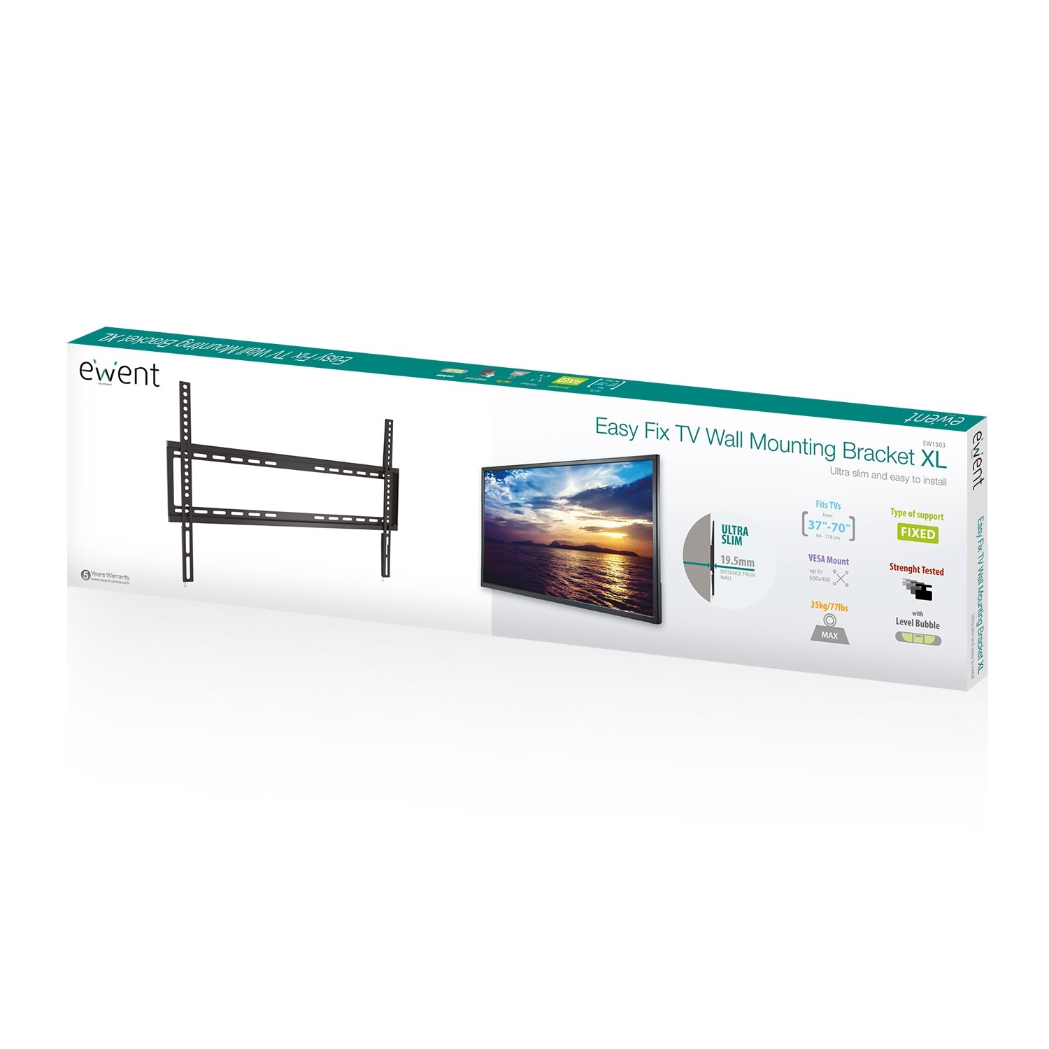 O Suporte de Parede XL para TV com Fixação Fácil EW1503 é a solução ideal para montar a sua TV (37 até 70 polegadas, peso máx. 35 Kg) extremamente junto à parede. O suporte tem um perfil fino de 19,5 mm e é adequado para todas as TV com as especificações de montagem VESA 200×200, 400×200, 300×300, 400×400, 600×400. O sistema de segurança mantém a TV firmemente segura.