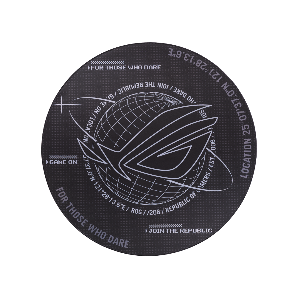 O ROG Cosmic Mat é uma edição especial, com tema espacial, apresentando um grande logotipo ROG e outros elementos inspirados no ROG. Feito de poliéster e com uma base de borracha antiderrapante, o ROG Cosmic Mat permanece firme no lugar, resiste à ondulação e suprime o ruído produzido pelos rodízios das cadeiras.