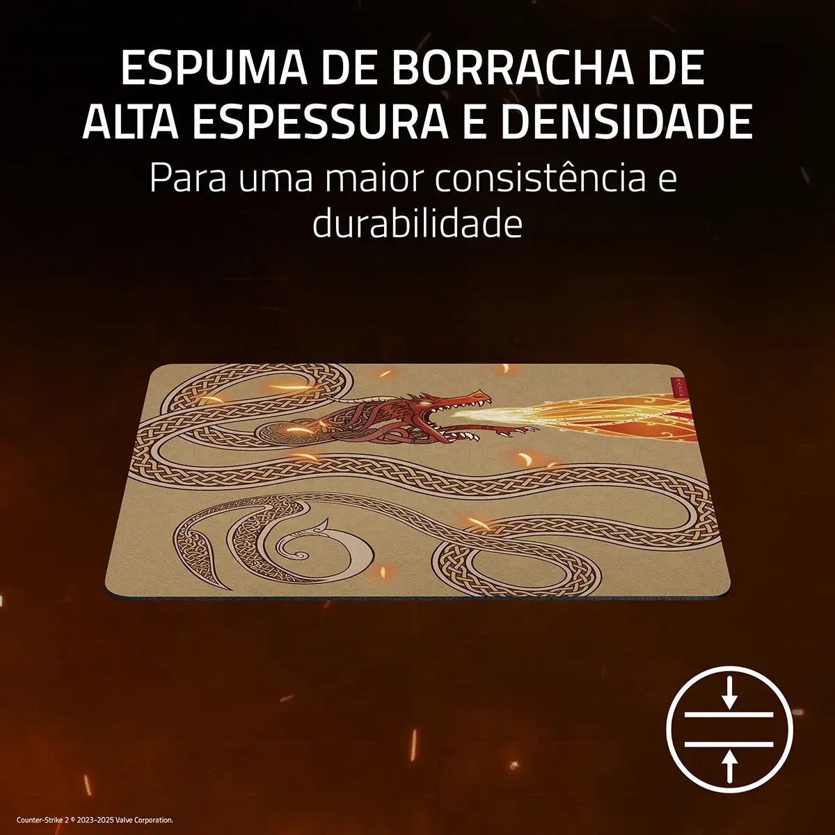 Com espessuras de 3 mm (M e G) e 4 mm (XXG e 3XG), este mousepad para jogos mantêm-se plano mesmo em superfícies imperfeitas e fica no lugar mesmo durante as sessões de jogos mais frenéticas, graças à base antiderrapante. Com uma base sólida para movimentos consistentes do rato, a espessura do mousepad também serve como apoio para os punhos durante os jogos.