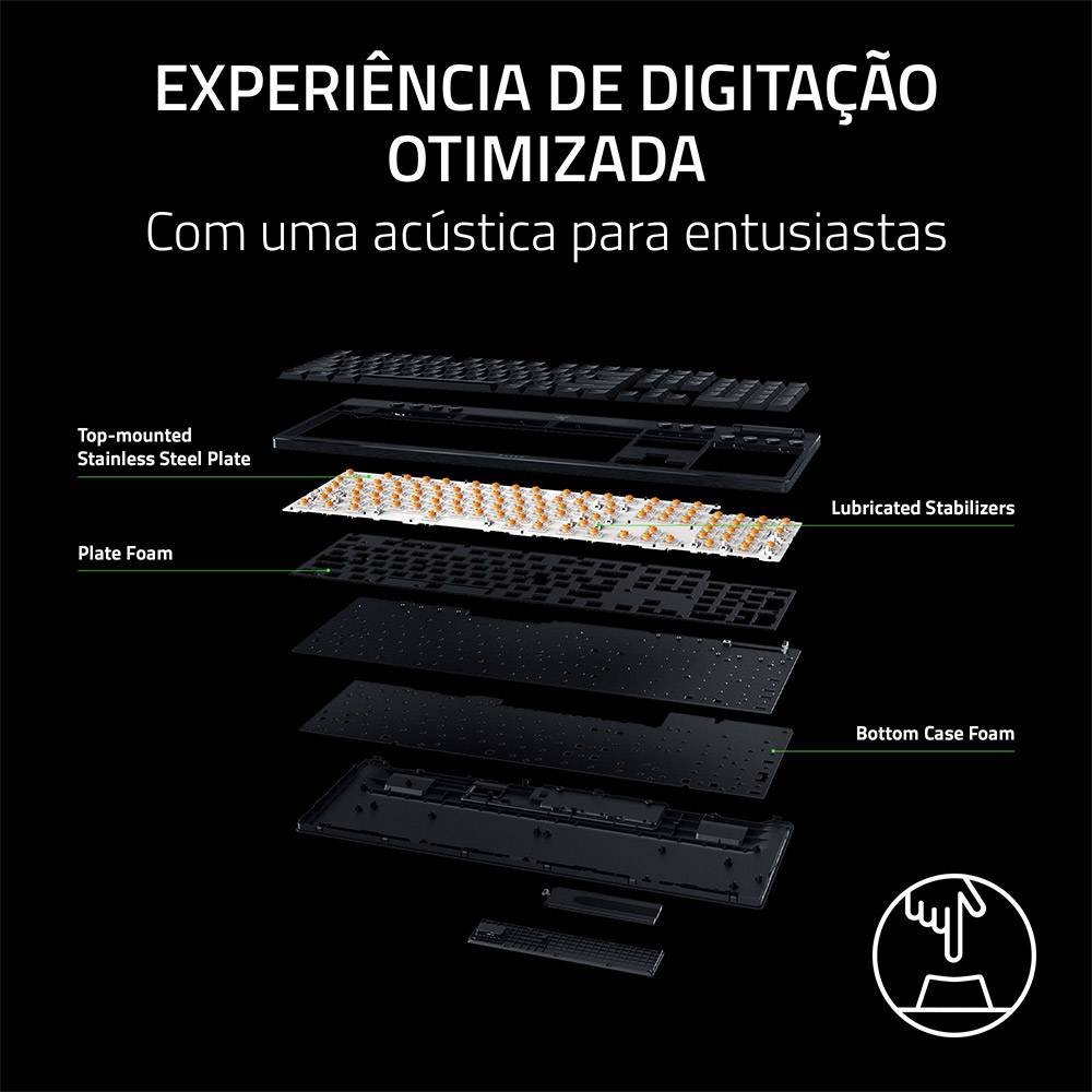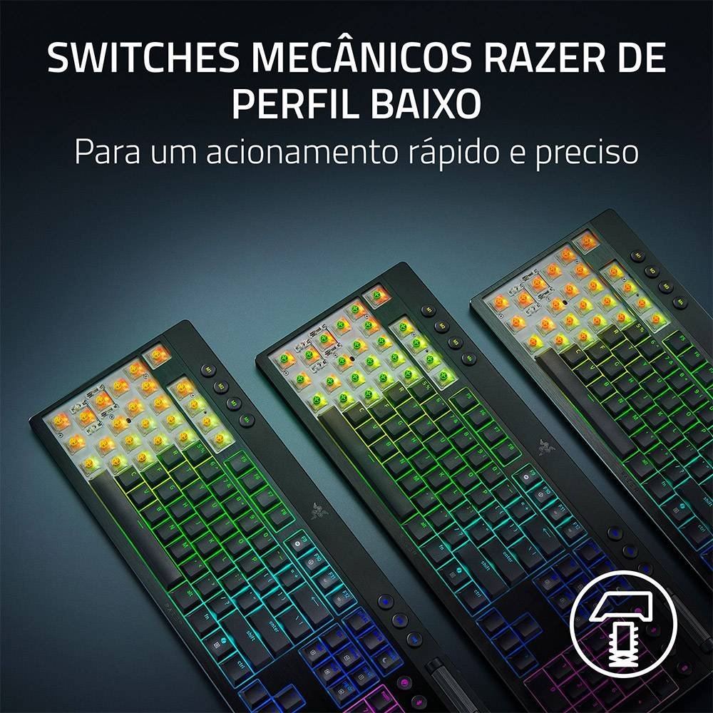 Teclado Razer BlackWidow V4 Low-profile HyperSpeed | Dongle HyperSpeed Wireless + Adaptador Dongle USB | Cabo USB Type-A para USB Type-C | Guia