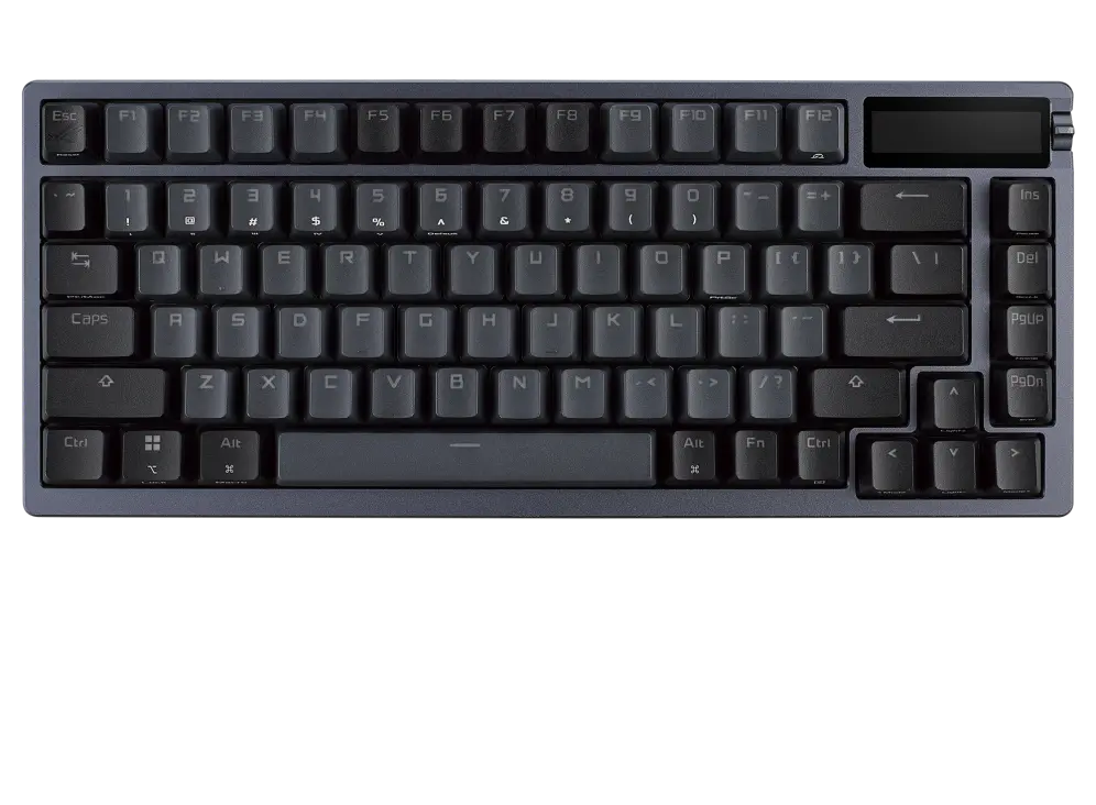 O ROG Azoth é um teclado de jogos com 75% das características DIY geralmente encontradas em teclados personalizados de alta qualidade. A capa superior metálica com vedação de silicone e amortecimento de três camadas, os interruptores mecânicos ROG NX intercambiáveis a quente e pré-lubrificados, o estabilizador do teclado, as teclas ROG de PBT de injeção dupla e o kit de lubrificação de interruptores incluído se combinam para criar experiências de escrita sem precedentes. O ROG Azoth também possui uma tela OLED com controles intuitivos, conectividade versátil de três modos com tecnologia sem fio SpeedNova em modo 2,4 GHz, três posições de inclinação ajustável e é compatível com MacOS.