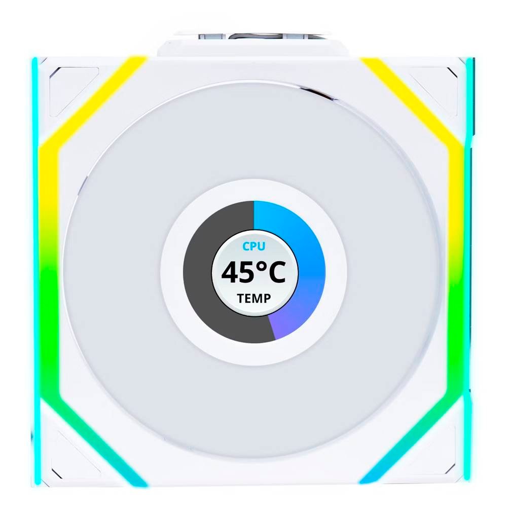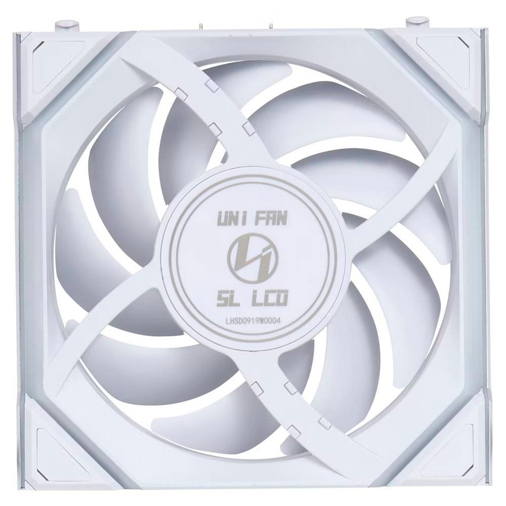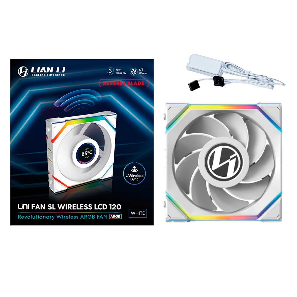 Ventoinha 120mm Lian Li Uni Fan SL120 LCD Wireless RGB Reverse Blade PWM Branca