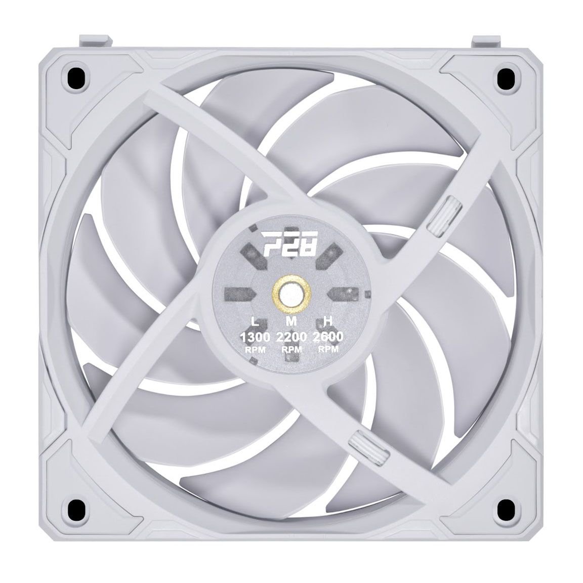 A lâmina da ventoinha UNI FAN P28 é fabricada em polímero de cristais líquidos (LCP), um material resistente que reduz a vibração e permite que a ventoinha funcione a alta velocidade sem comprometer a estabilidade.