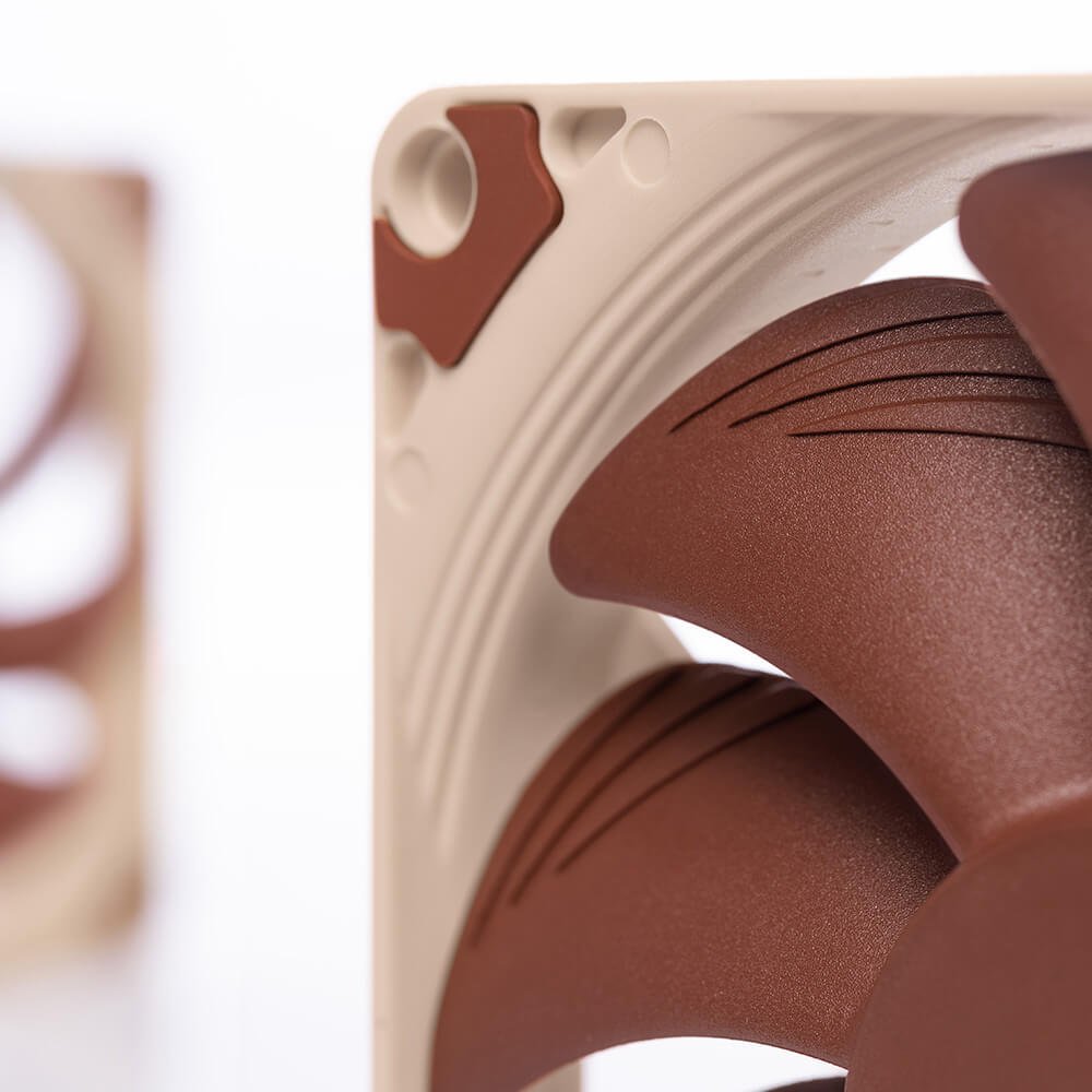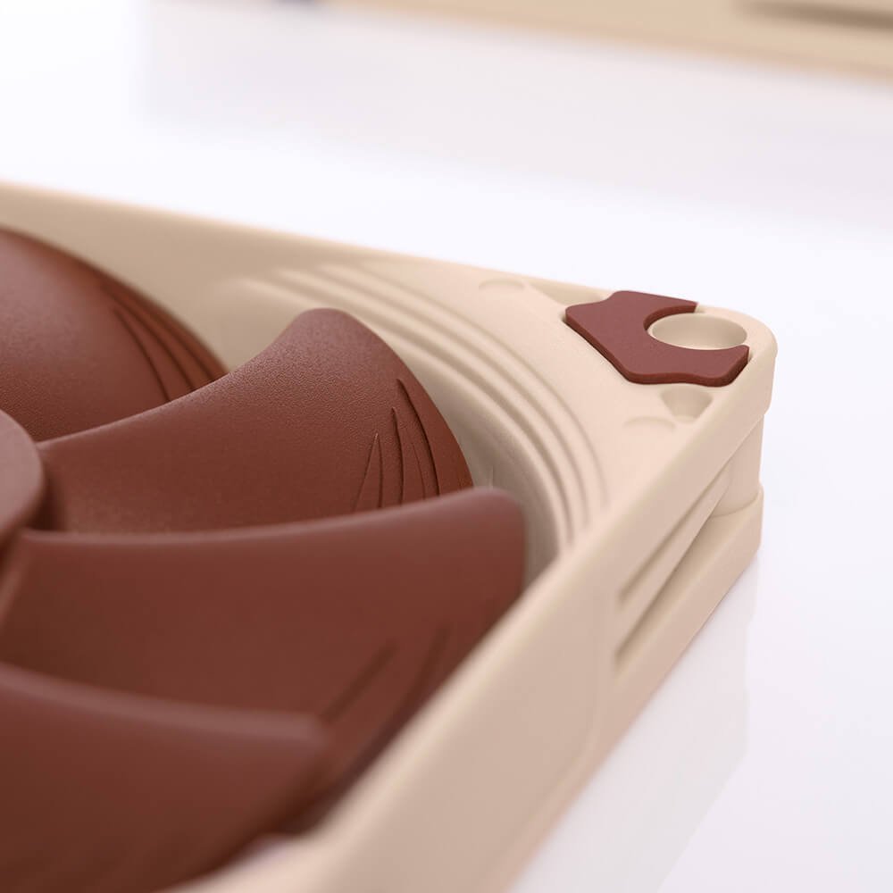As estruturas AAO (Advanced Acoustic Optimisation) de Noctua apresentam almofadas antivibração integradas, bem como o desenho de entrada faseado e as microestruturas de superfície interna de Noctua, ambos aperfeiçoando ainda mais o desempenho/eficiência de ruído da ventoinha.